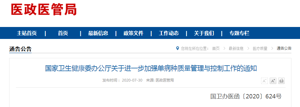 2020年7月30日,国家卫生健康委发布《关于进一步加强单病种质量管理与控制工作的通知》,将51种病种/技术纳入国家监测的单病种范围,并围绕质量控制、资源消耗两个维度对其中的关键环节制定了质量监测信息项。